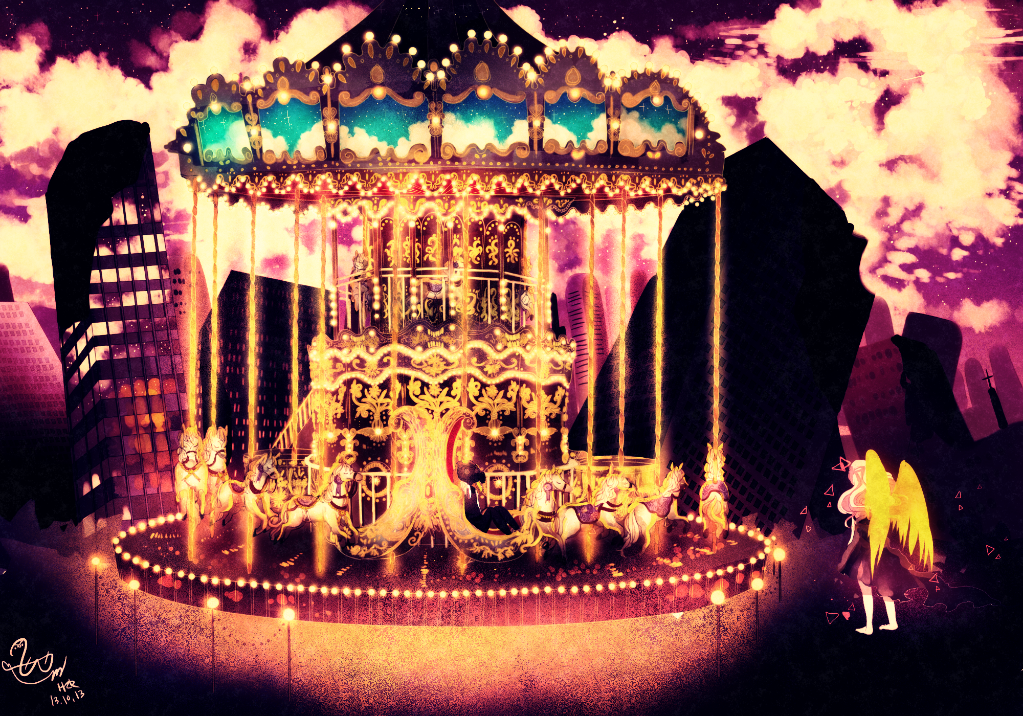 최근에서야 pv를 좀 더 이해하게 되었는데, 계속 등장하는 회전목마와 관람차는 끝과 시작이 명확하지 않고 계속 빙빙 도는 놀이기구라서 마치 끝 없이 일하는 사람을 상징하는 거라고 해석했어요.